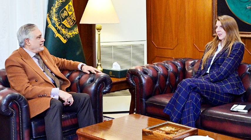 ISLAMABAD: Deputy Prime Minister and Foreign Minister Mohammad Ishaq Dar held a meeting with British High Commissioner to Pakistan Jane Marriott in Islamabad.