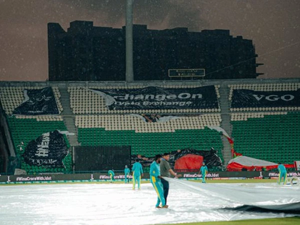 The match was scheduled to take place at Gaddafi Stadium, but the field was fully covered to protect it from the wet conditions. Officials waited to decide the next steps once the weather improves and the ground is inspected.
